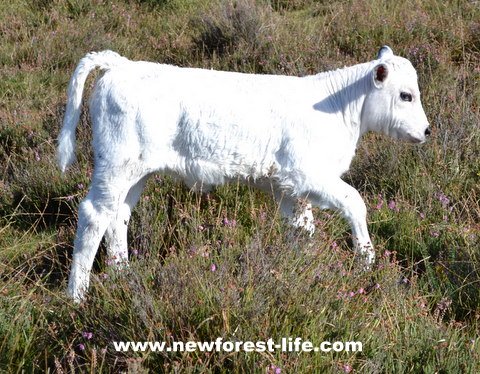 A heavily pregnant New Forest cow had recently been outside our cottage for a few days. One day when I was reading the paper in the garden I thought she would have it there and then, despite being just outside the fence. Luckily she held on for a few more days. New Forest cows usually take themselves a little bit away from the herd to have their calves. After a day or so they all meet up again and usually the herd becomes a nursery. When we saw this lovely little white calf she was in a woodland, with mum. They were next to a small herd of cows in a paddock. They were all curious about each other. As the young calves in the paddock were frolicking about, mounting each other and doing other daft antics the little calf got closer and closer. Mum was not at all pleased. Although we were standing silently watching this go on she wasn't concerned about us, but decided she's warn the cows in the paddock to move away from the fence, which was only wire and looked like it would break, and move her little calf to safety. As you can see it is a stunning little calf and we look out of the window every morning when we wake up to see if she has brought him up to play and graze outside our cottage. Life couldn't be much better if you're an animal lover could it?